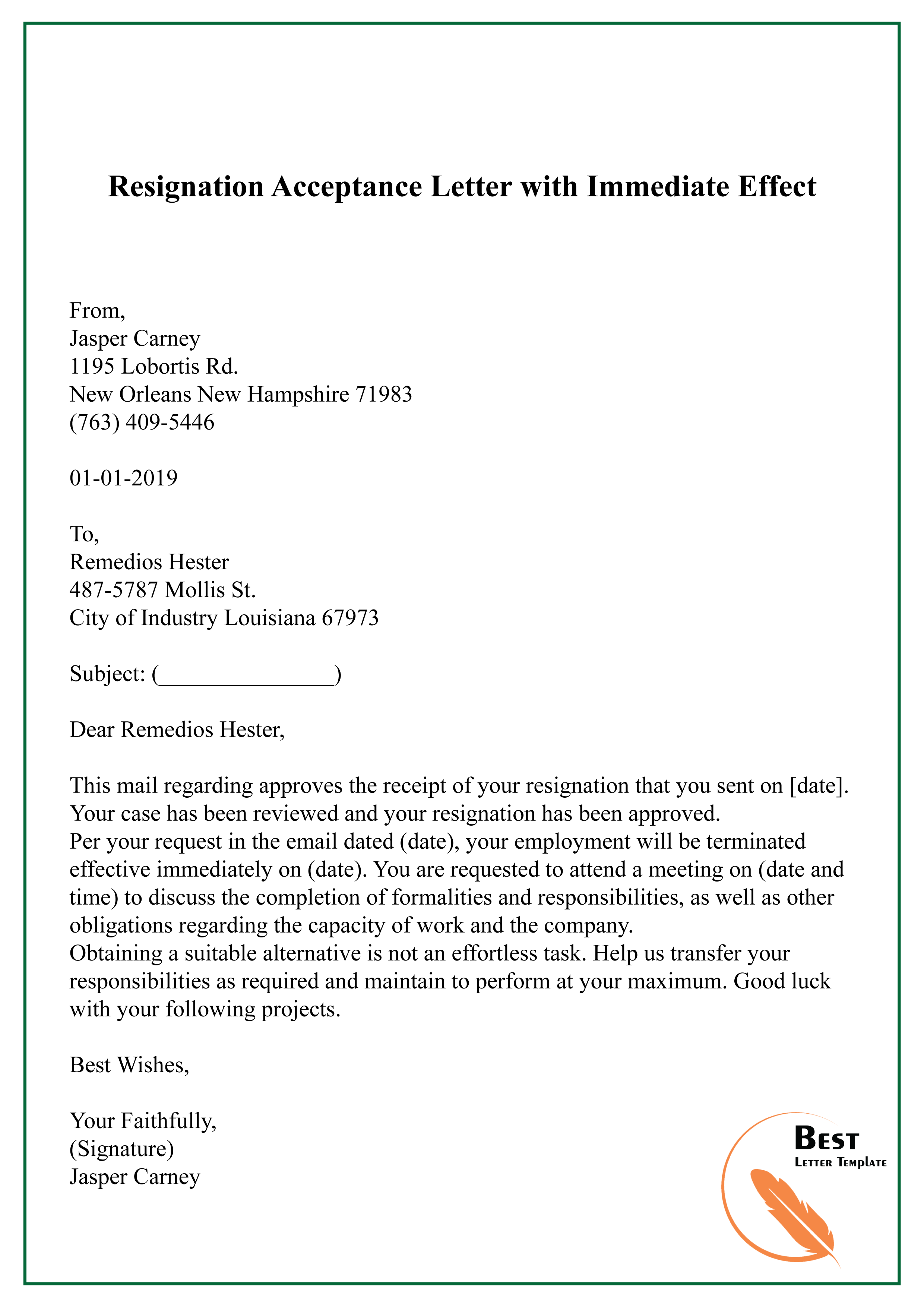 Free Resignation Acceptance Letter With Immediate Effect In. Download