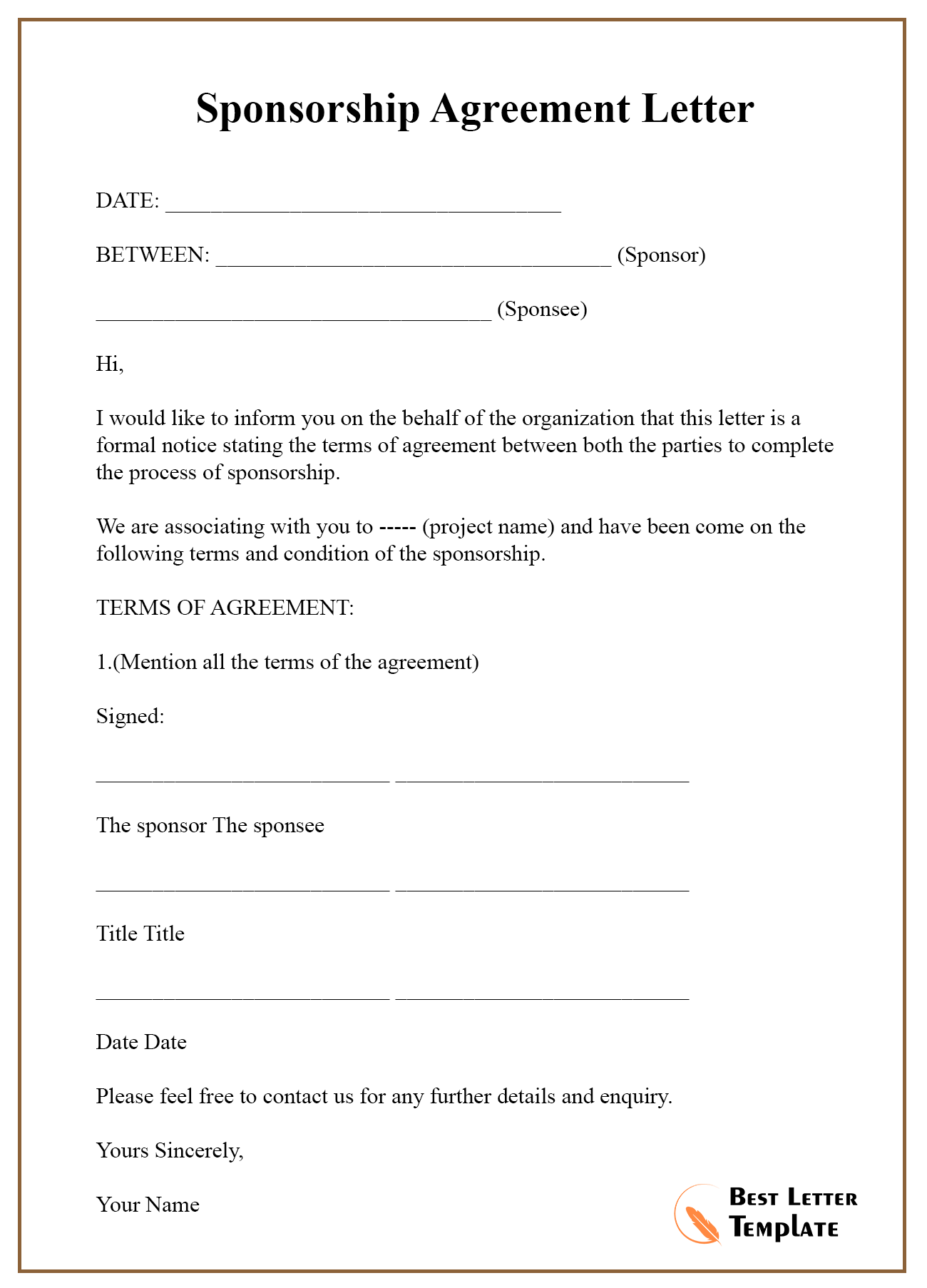 Sponsorship Agreement Letter And Form For Committment. Download